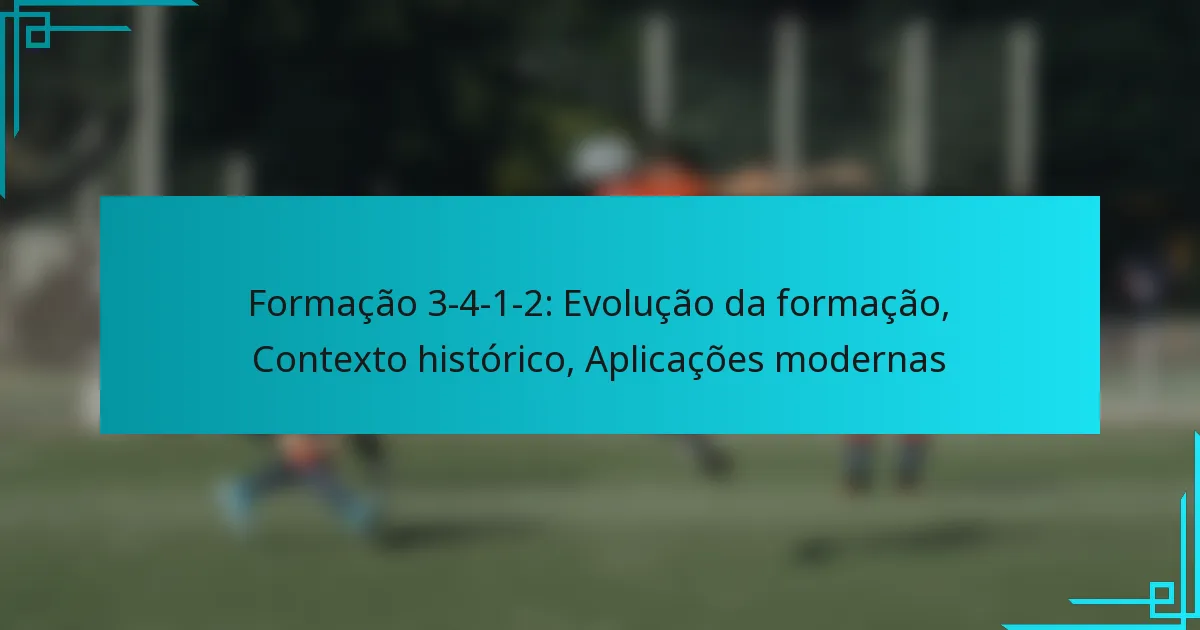 A formação 3-4-1-2 é uma configuração tática no futebol que enfatiza uma base defensiva forte enquanto permite um jogo ofensivo dinâmico. Evoluindo desde a sua criação, esta formação adaptou-se às mudanças nos papéis dos jogadores e nas filosofias táticas, demonstrando a sua versatilidade e impacto estratégico no jogo.